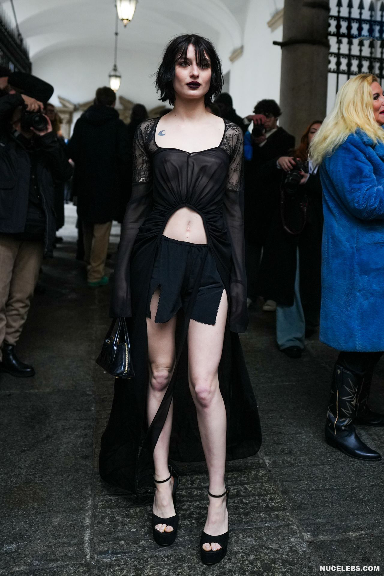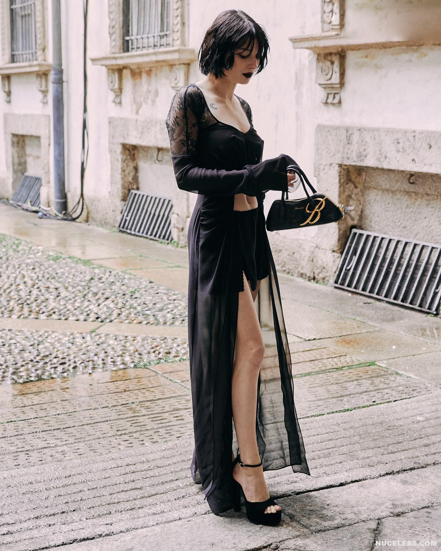 Alice Pagani teases everyone with her nude boobies in public. Her black tight dress, in which this 26-year-old Italian actress arrived at one of the events, emphasized all the advantages of her figure and not only. So, the paparazzi did not stop photographing Alice Pagani nude wonderful tits, which were visible through the transparent fabric. She’s more captivating than ever. Discover these and other stunning photos of her.
