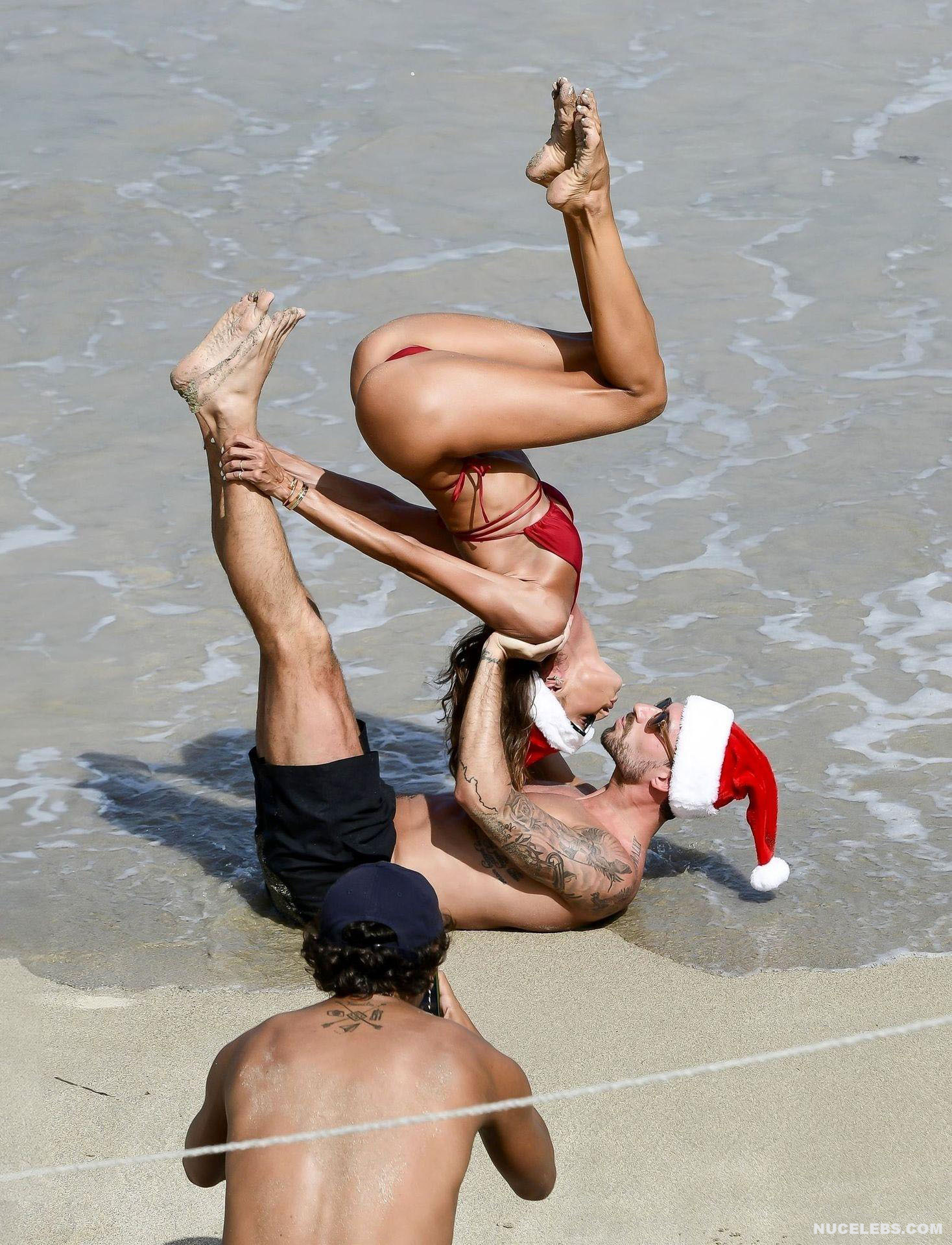 Thanks to daily workouts and a balanced diet, Izabel Goulart can boast of a great physical shape. This Brazilian supermodel effortlessly performs various gymnastic and acrobatic tricks during the photo shoot. It is worth noting that she was dressed only in a tiny red bikini. Perhaps you assumed that Izabel Goulart nude boobs would slip out of it? No, it didn’t happen. However, Izabel Goulart pussy lip still slipped out of her tiny thong during one exercise. Amazing sight!