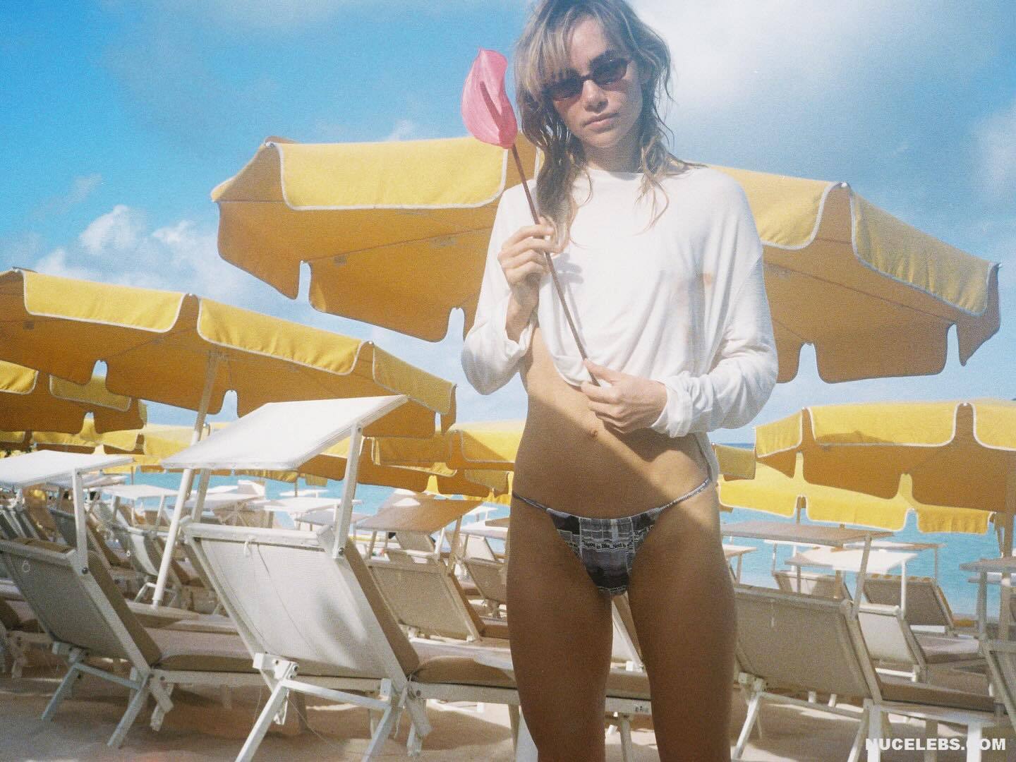 Suki Waterhouse is used to impressing everyone with her sexy photos. Check out how this actress poses in a white shirt, slightly opening her mouth and looking at the camera… She knows how to look damn hot not only during photo shoots, but also in real life. Have you already seen her photos in tiny bikinis or lingerie? These small pieces of fabric only manage to slightly cover Suki Waterhouse’s sweet booty and boobs, don’t they?